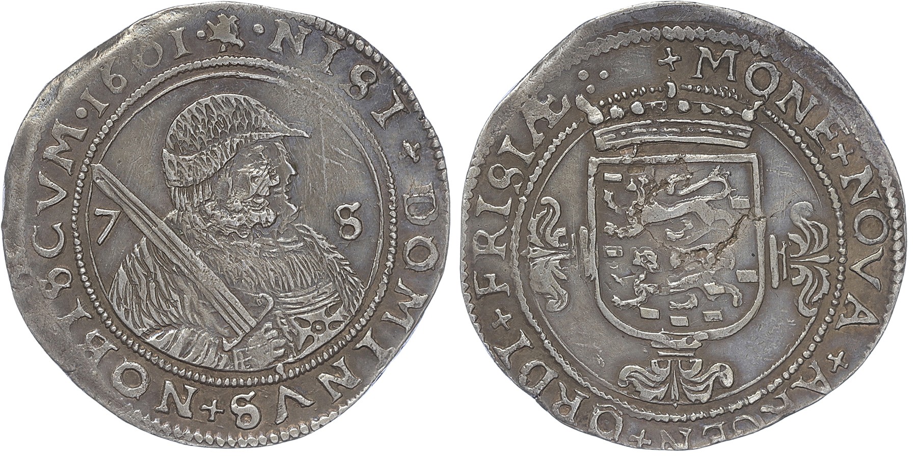 Friesland. Kwart Florijn van 7 stuiver 1601, met 7-S. Cnm 2.16.89; D. 1103; V.127.4; de Bruijn 14. R. Zeer fraai+. Ex. Henzen L 175/1074