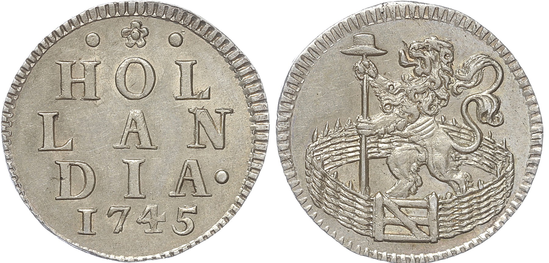 Holland. Duit 1745 in zilver. Cnm 2.28.126; V. 57.6. Prachtig/FDC.
