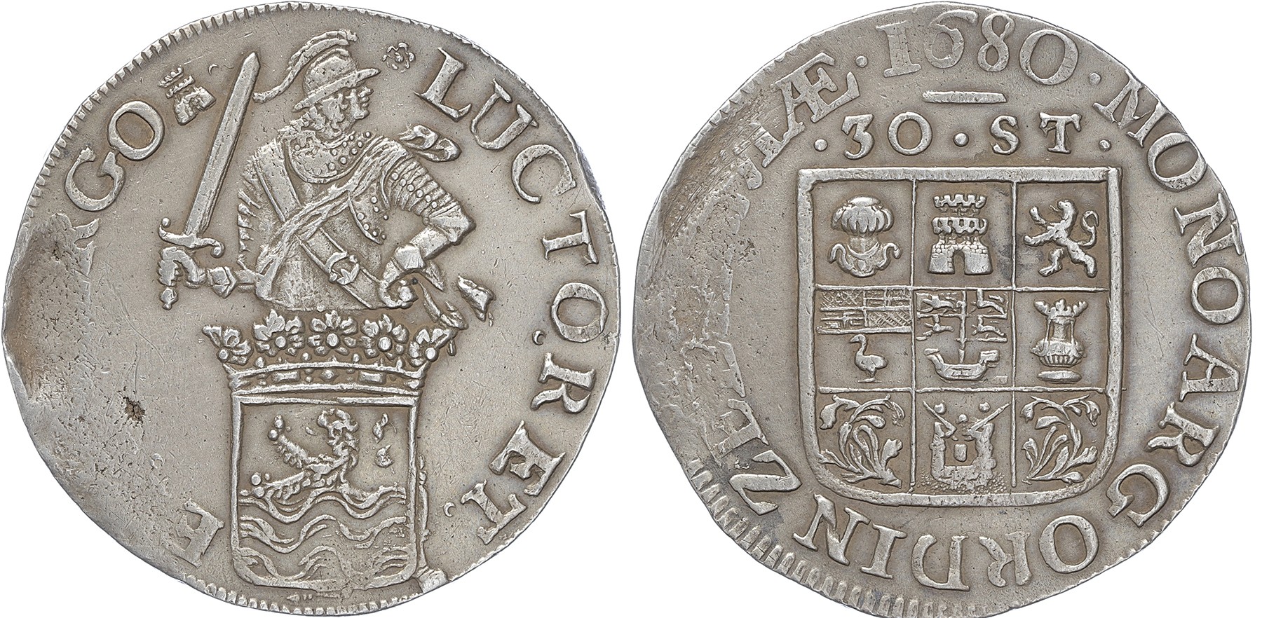 Zeeland. Daalder van 30 stuiver 1680. Cnm 2.49.65; D. 1082; V. 90.1. Iets zwak, overigens zeer fraai. Ex. Henzen L 176/973