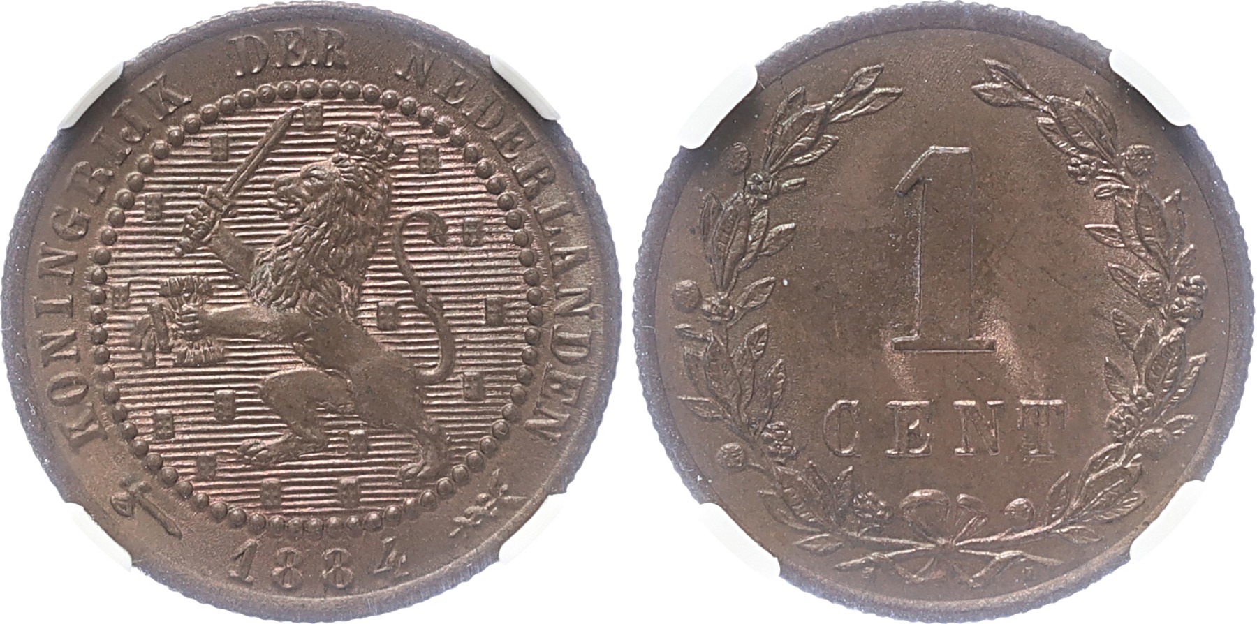 1 Cent 1884. NGC MS 65 BN. FDC.