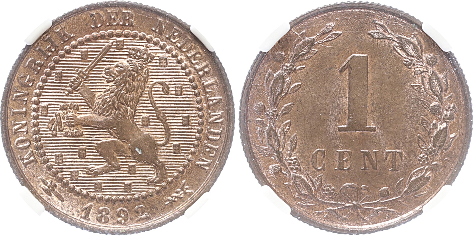 1 Cent 1892. NGC MS 65 RB. 100% originele muntkleur. FDC.