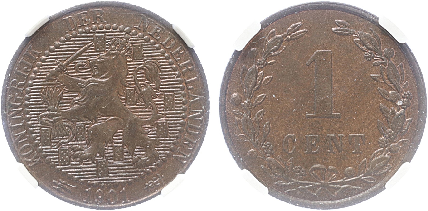 1 Cent 1901G. NGC MS 65 RB. Schaars in deze mooie kwaliteit. FDC.