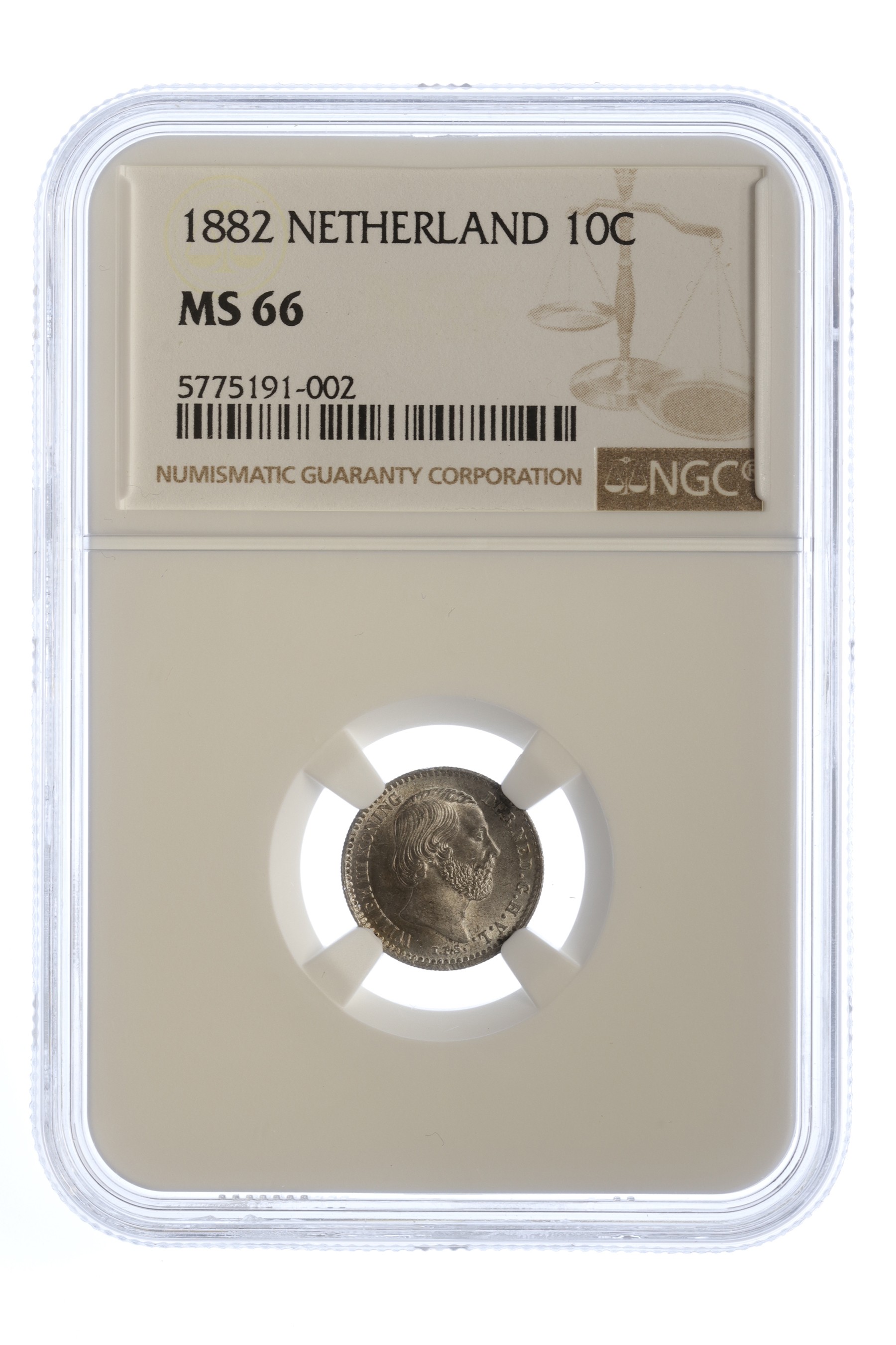 10 Cent 1882. NGC MS 66. Mooie kleur. FDC.