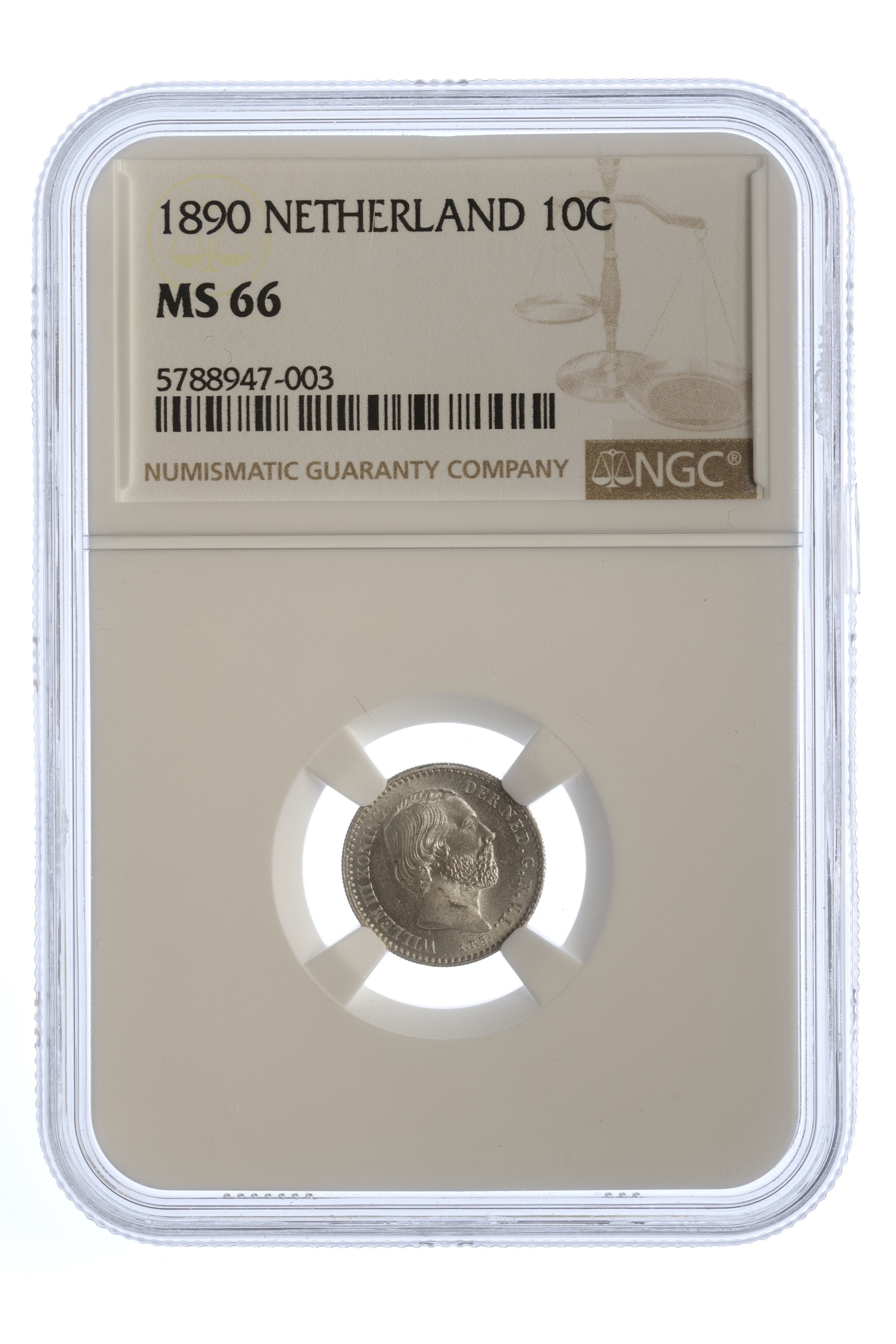 10 Cent 1890. NGC MS 66. Mooie kleur. FDC.