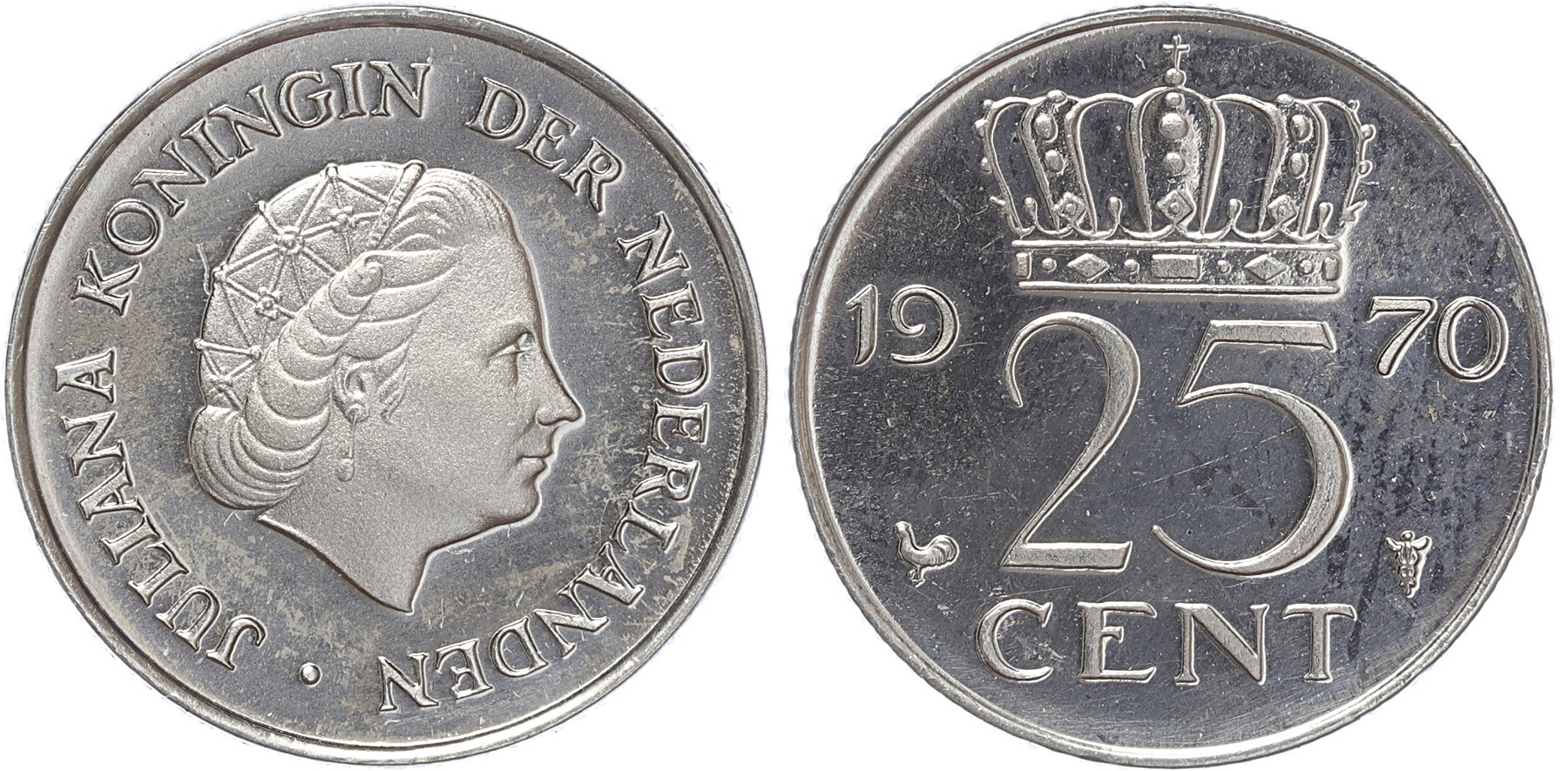 25 Cent 1970. Met gepolijste stempels geslagen. Proof.