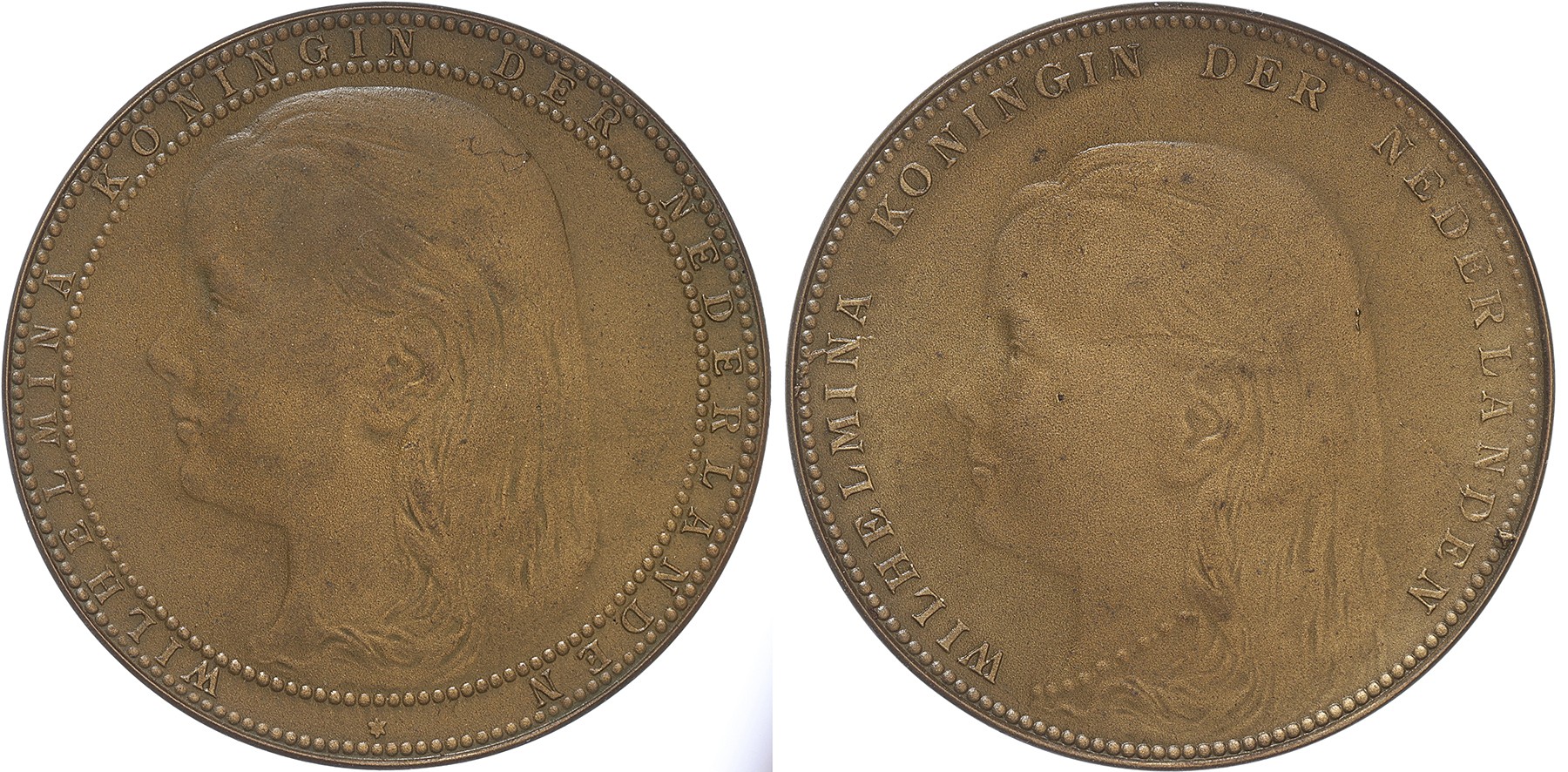 Rijksdaalder 1892. Proefslag in brons door Begeer. Sch.794. Ex. MPO A2007-5/3398, € 865,-