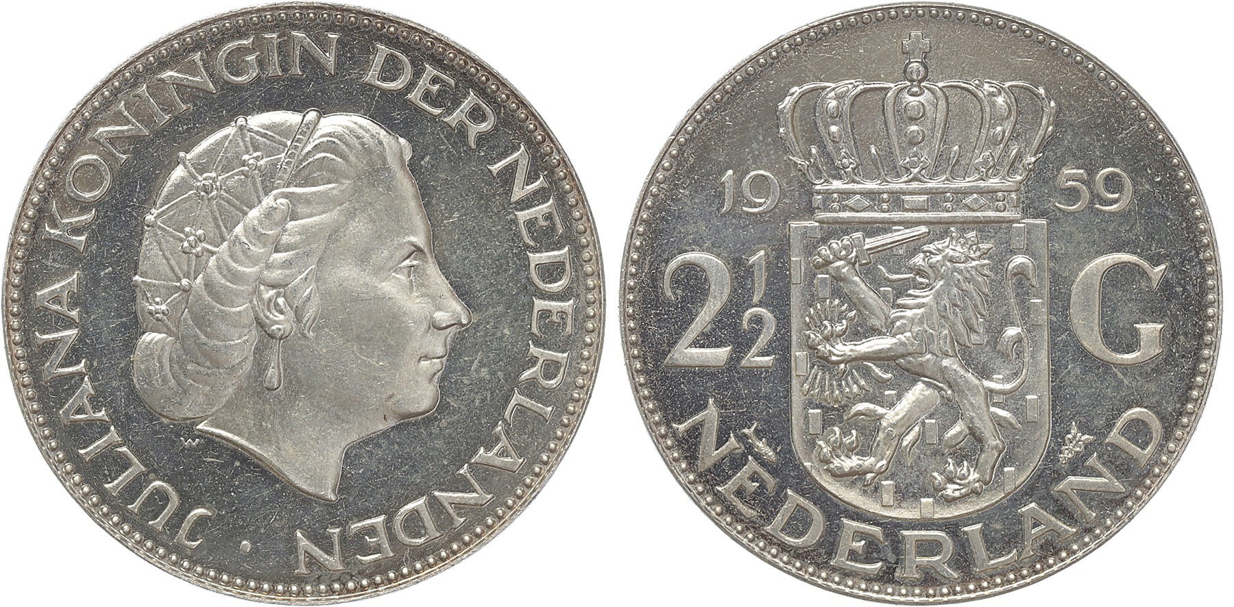 2 1/2 Gulden 1959. Met gepolijste stempels geslagen. Proof.