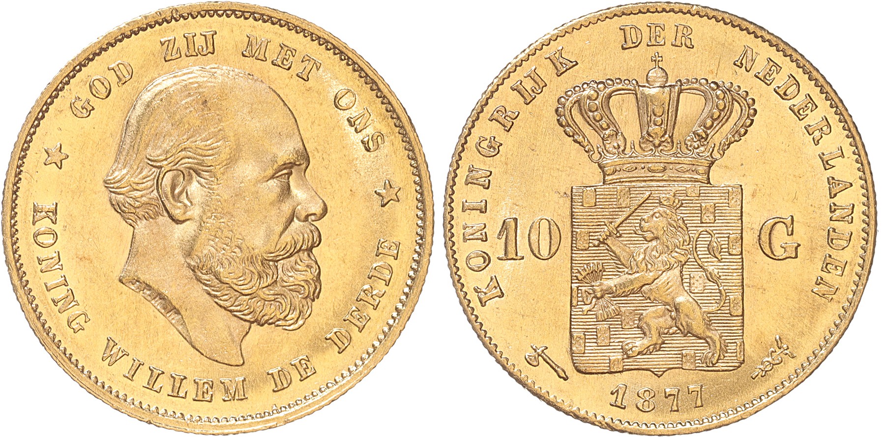 10 Gulden goud 1877. FDC.