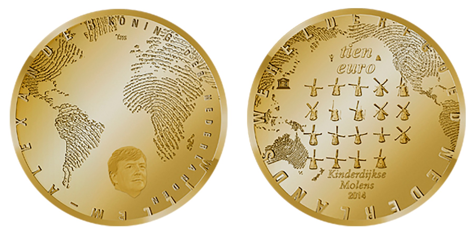 10 Euro goud 2014. Molen Tientje. Proof in cassette.