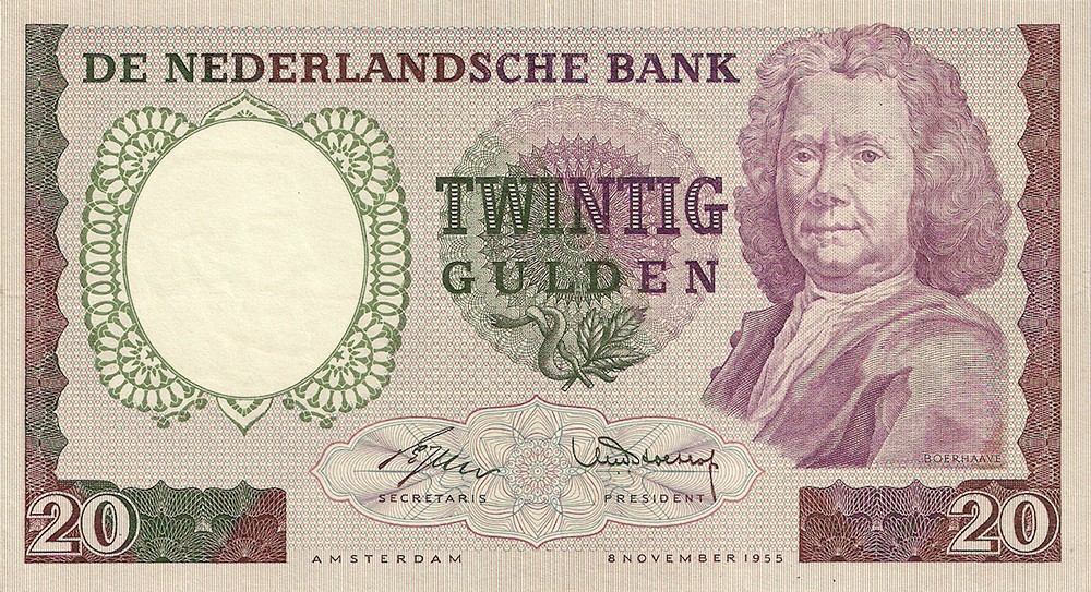 20 Gulden 1955 bankbiljet. Alm. 60-1. Ruim prachtig.