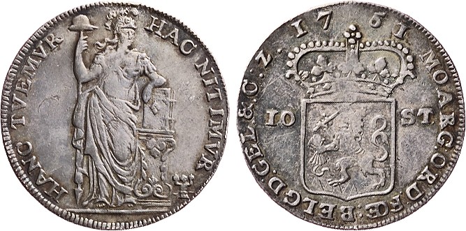 10 Stuiver 1751/50. Cnm 2.17.157. Zeer fraai.