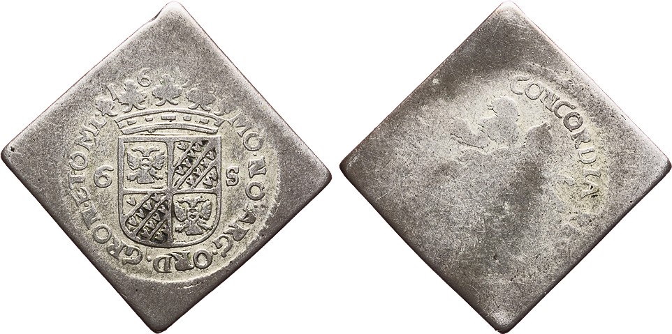 Rijderschelling 1691. Piedfort op vierkant muntplaatje. 13,6 gram. Ca. zeer fraai. Zeldzaam stuk.