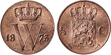 1/2 Cent 1873. FDC. Originele muntkleur.