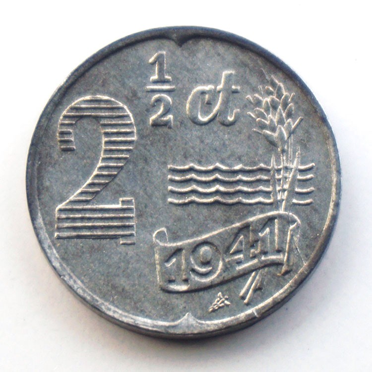 2 1/2 Cent 1941 zink. FDC. Originele muntkleur.