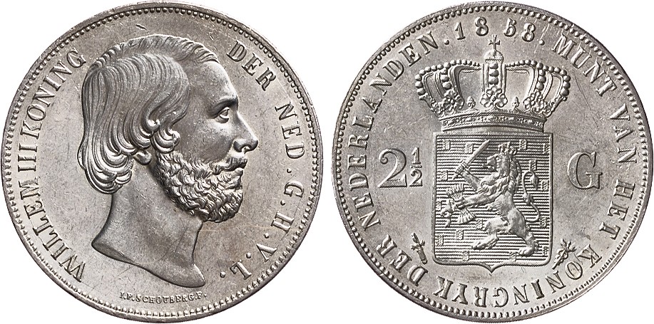 2 1/2 Gulden 1858. FDC. Mooie witte kleur.