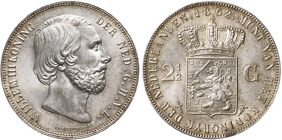 2 1/2 Gulden 1862a. FDC. Masterpiece met zeldzaam mooie kleur!