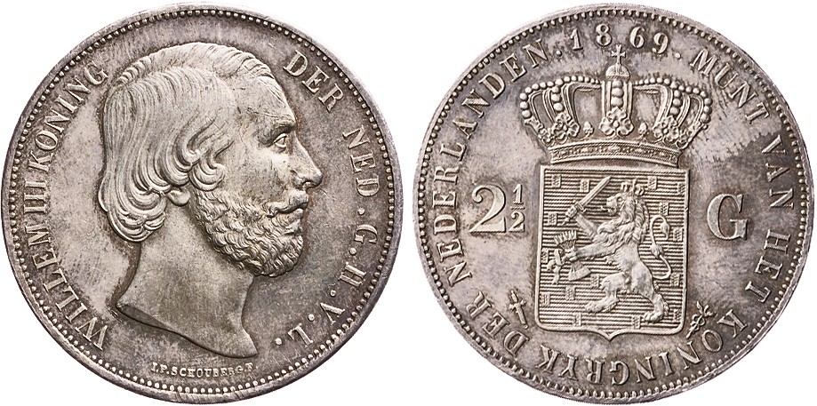 2 1/2 Gulden 1869. FDC. Patina.