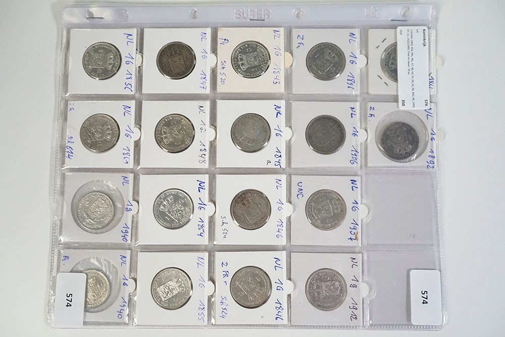 1 Gulden 1843, 45a, 46L, 46z, 47, 48, 54, 55, 56, 61, 66, 892, 96, 1906, 07, 12, 1922/1940. Fraai en beter. 30 ex.