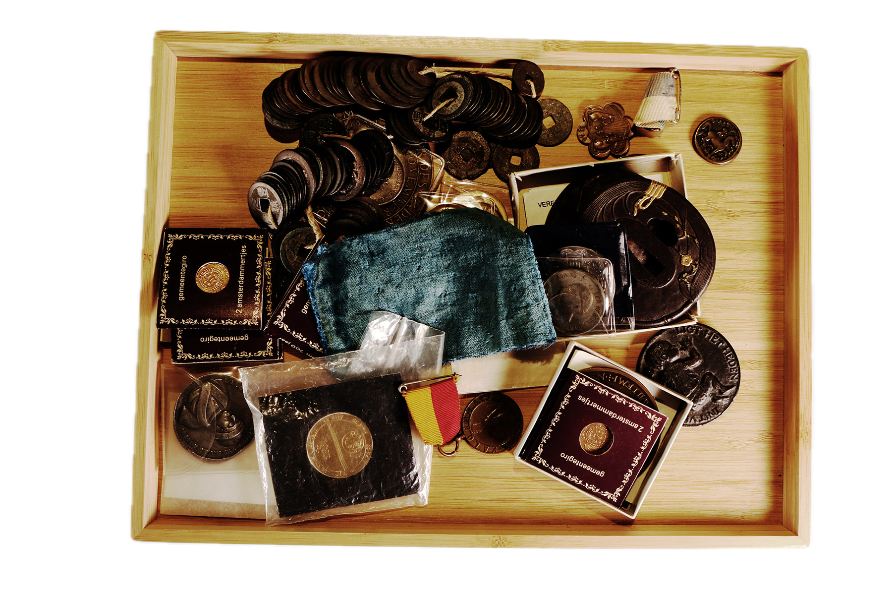 Lot penningen divers w.o. leuk oud materiaal en iets primitief geld.