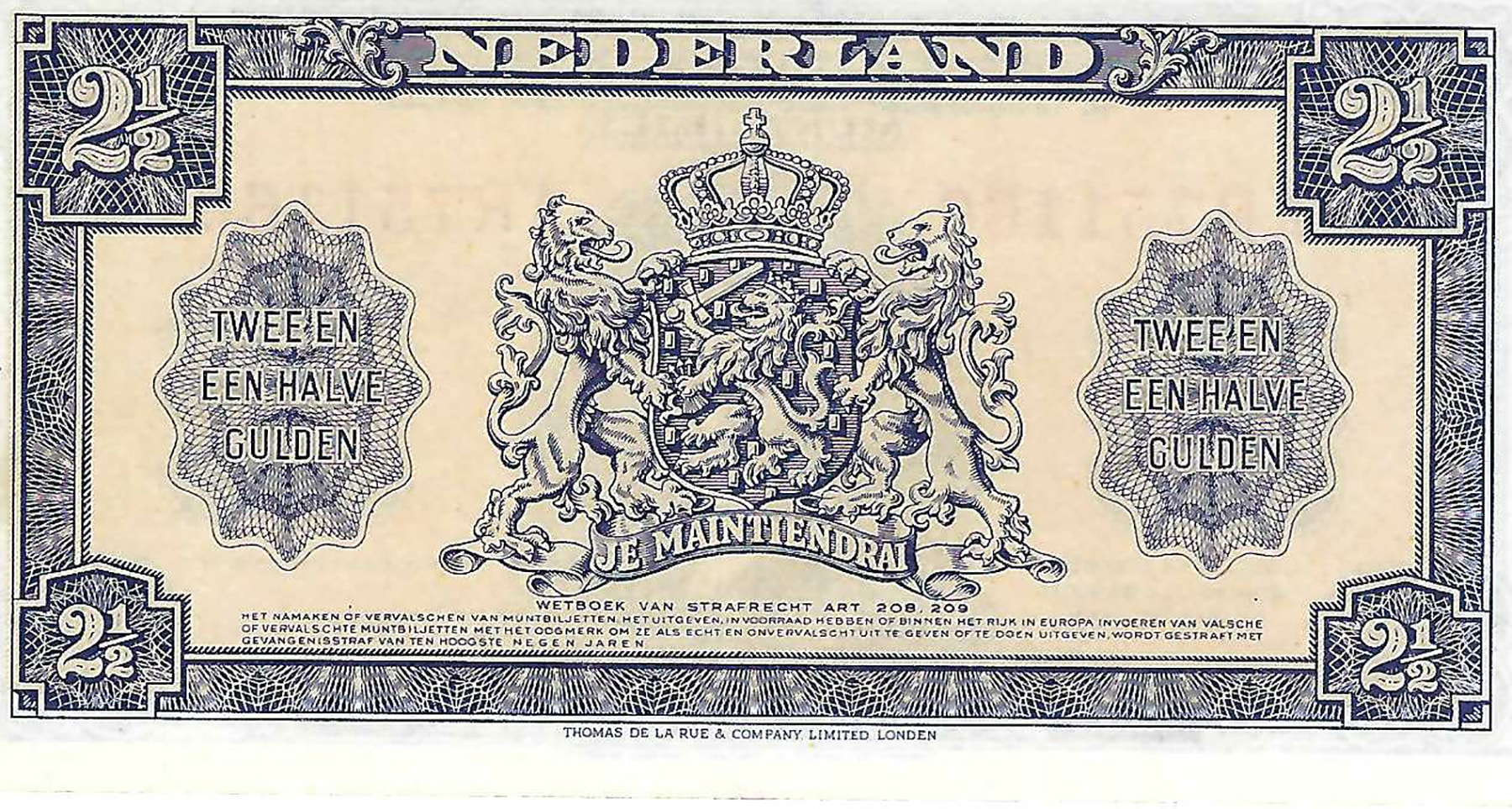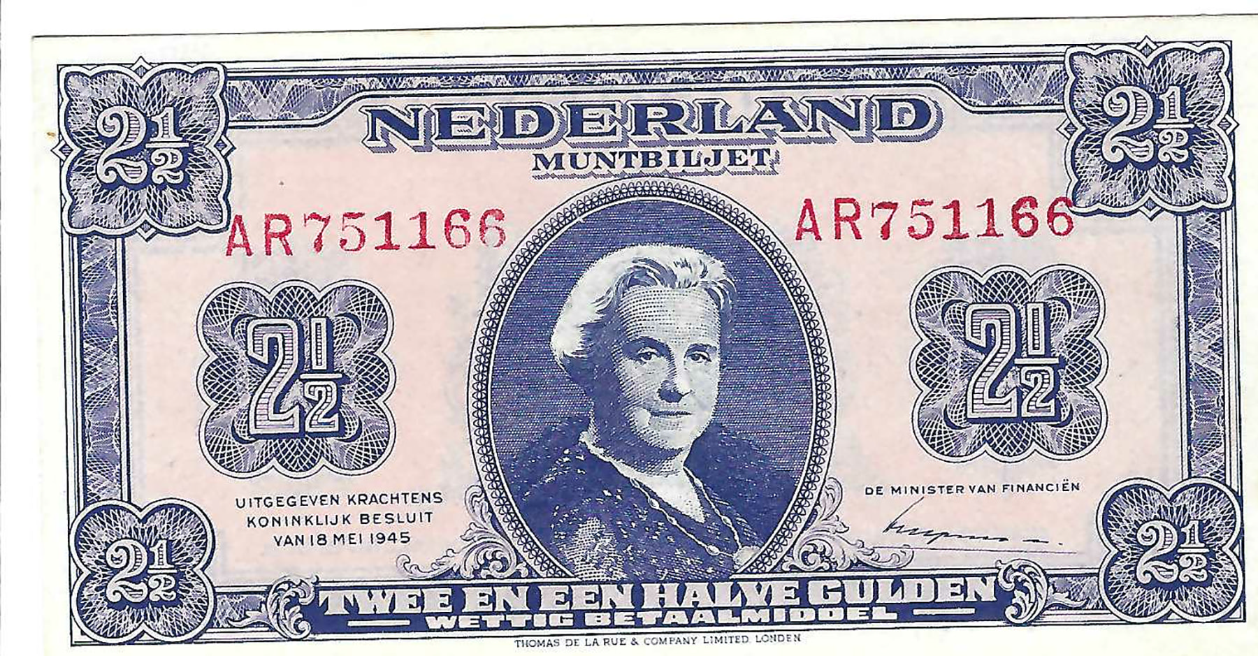 2 1/2 Gulden 1945 muntbiljet. Alm. 15-1b. UNC.