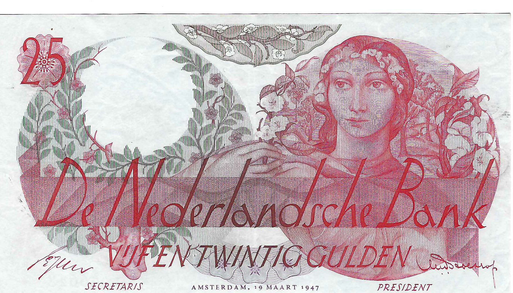 25 Gulden 1947. Flora. Alm. 81-1. Zeer fraai/prachtig.