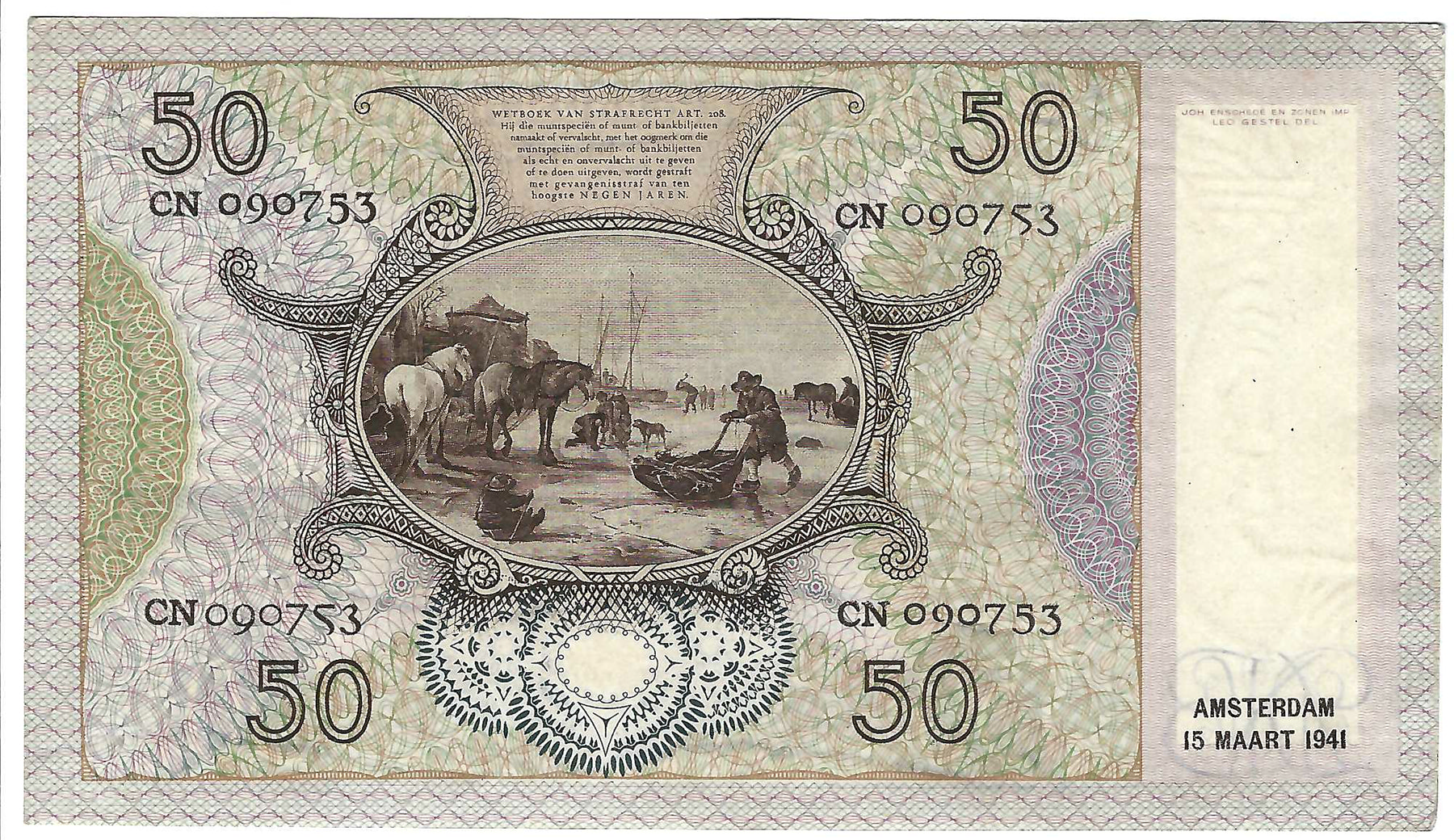 50 Gulden 1941. Oestereetster. Alm. 97-1. UNC-.