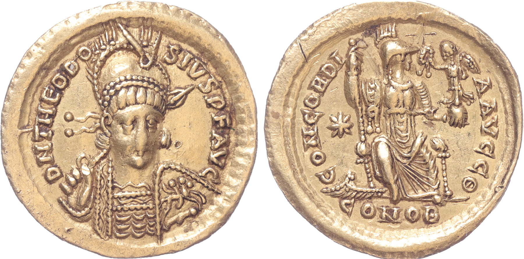 Theodosius II (AD 402-450). AV Solidus (Constantinopel, 4,36g). Ric. 202. VF/XF.