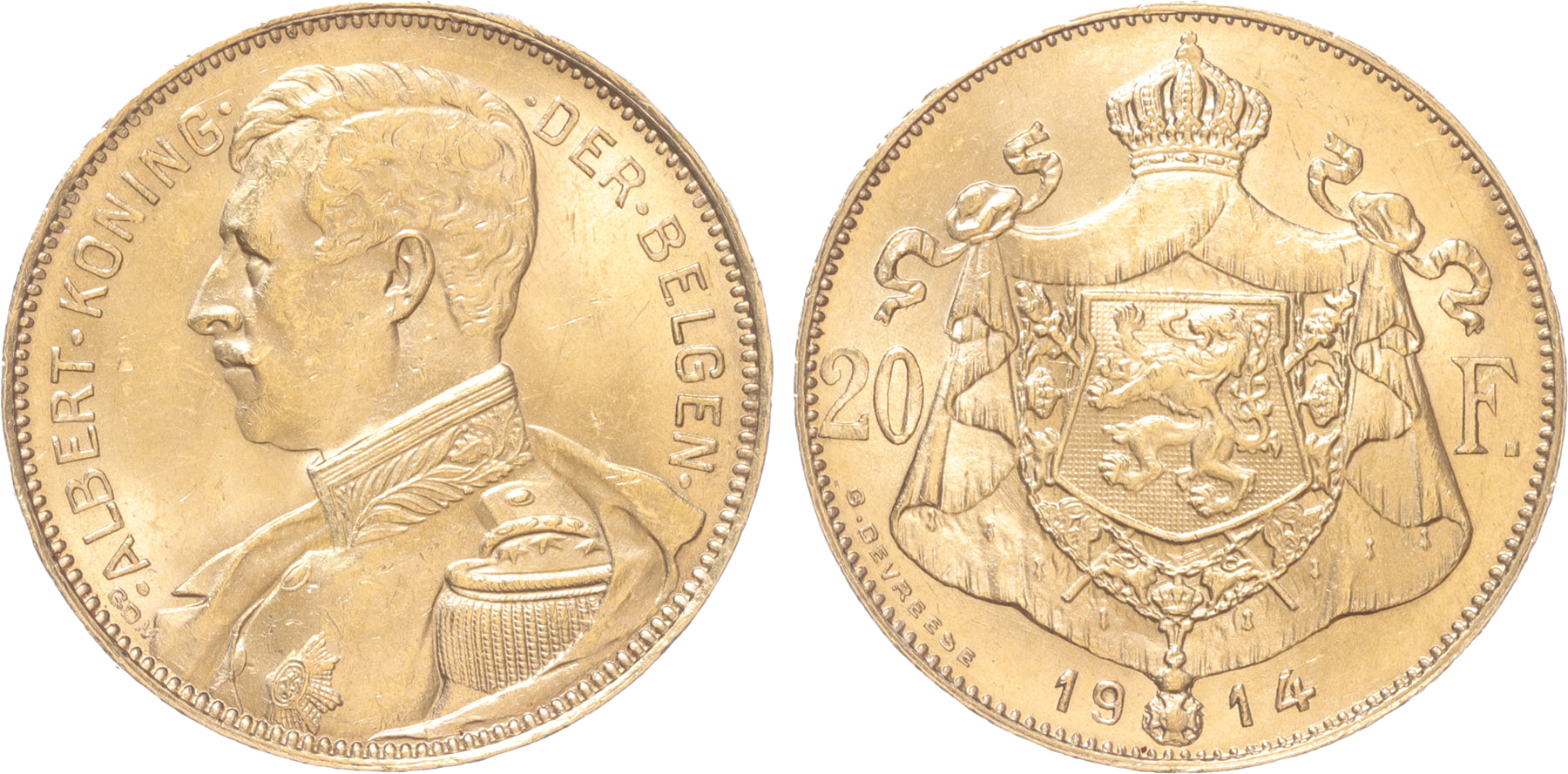 Belgium. 20 Francs gold 1914 pos. a. XF.