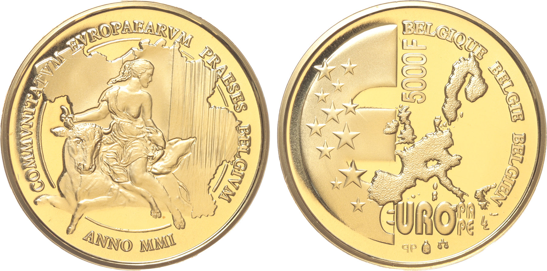 Belgium. 5000 Francs gold 2001. EU Presidency. Proof.