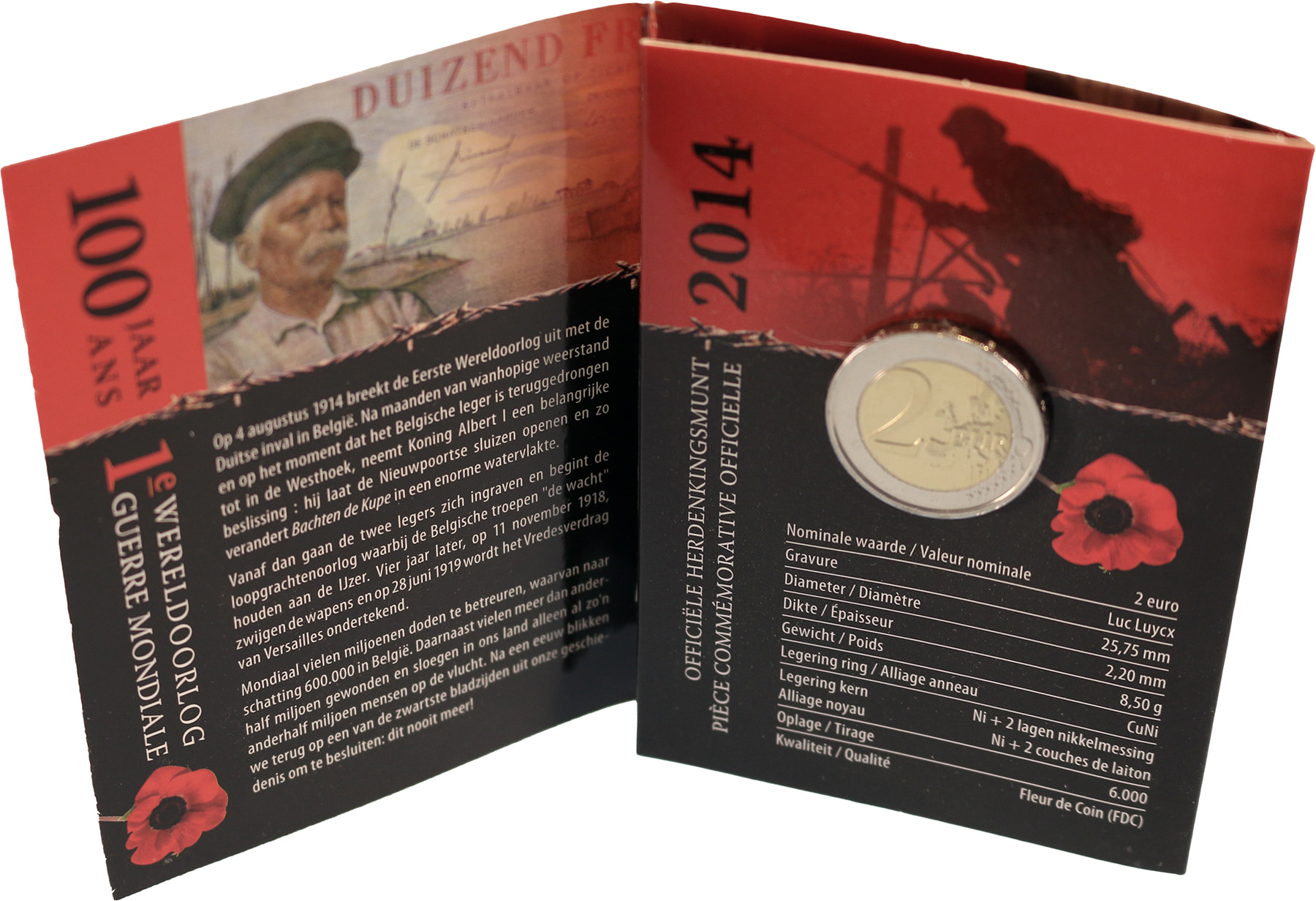 Belgium. 2 Euro 2018. World War I. BU in blister.