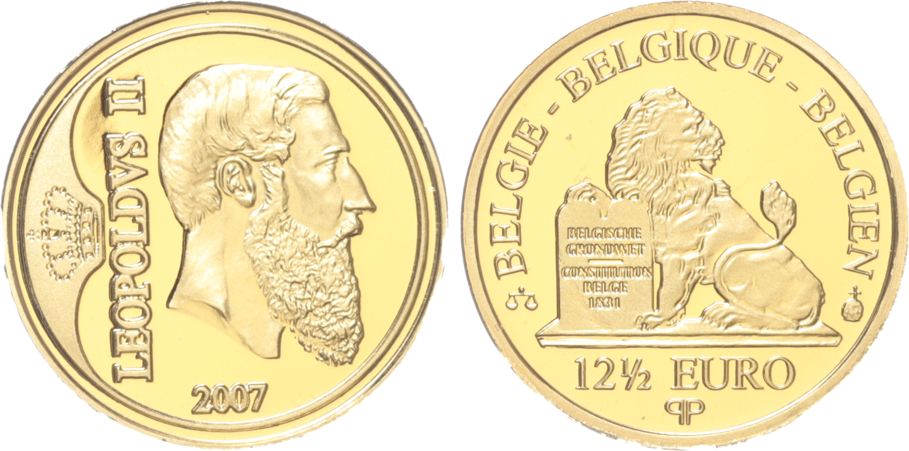 Belgium. 12 1/2 Euro gold 2007. Leopold II. Proof in capsel.