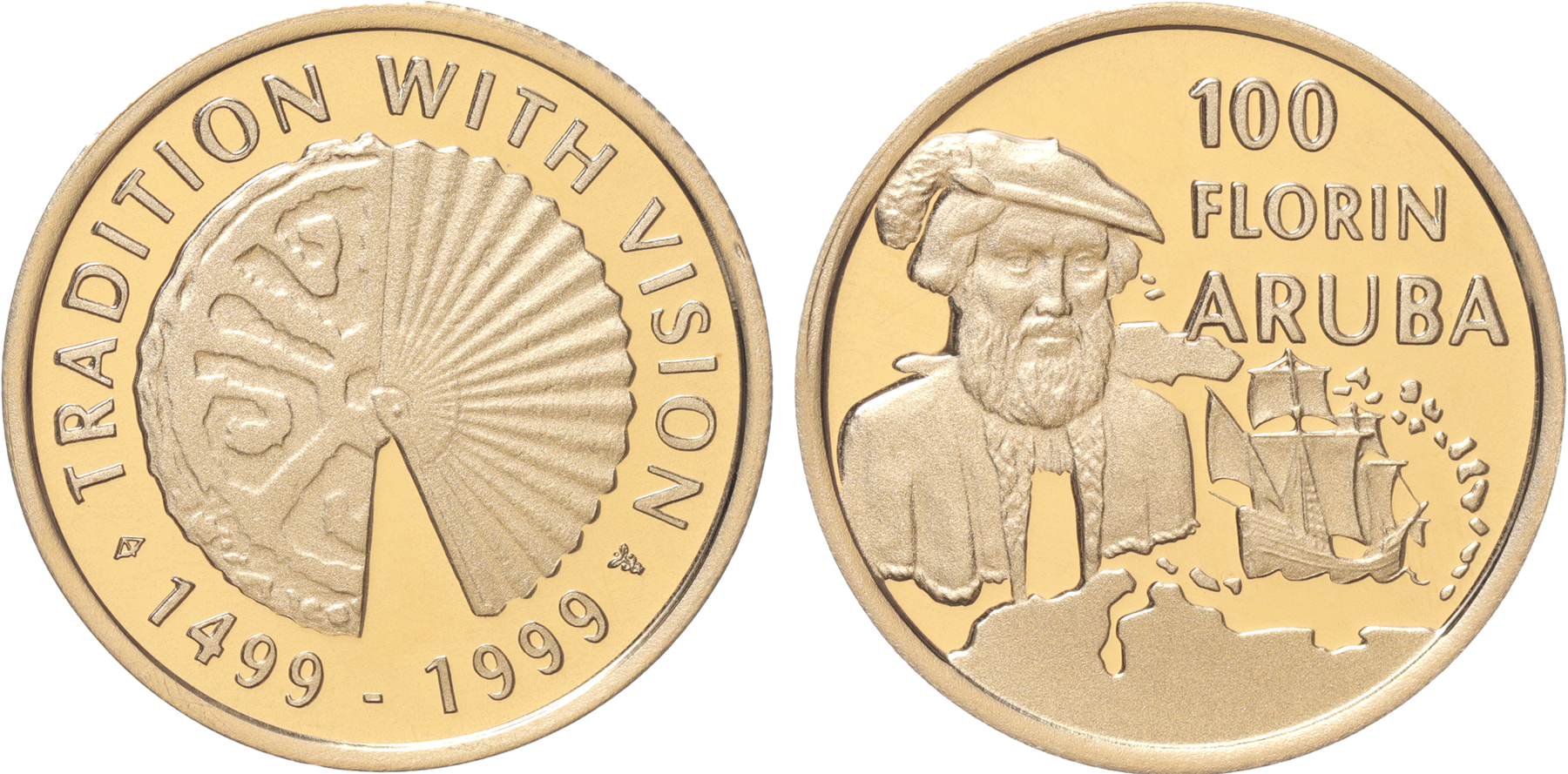 Aruba. 100 Florin goud 1999. Vespucci. Proof.