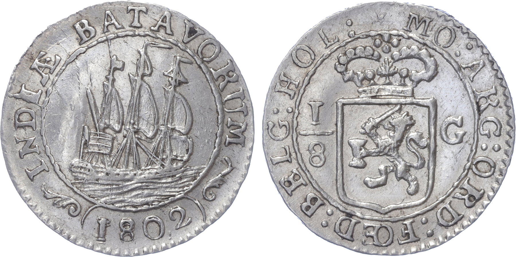 Nederlands Indië. 1/8 Scheepjesgulden 1802. Scho. 496. Zeer fraai/prachtig.