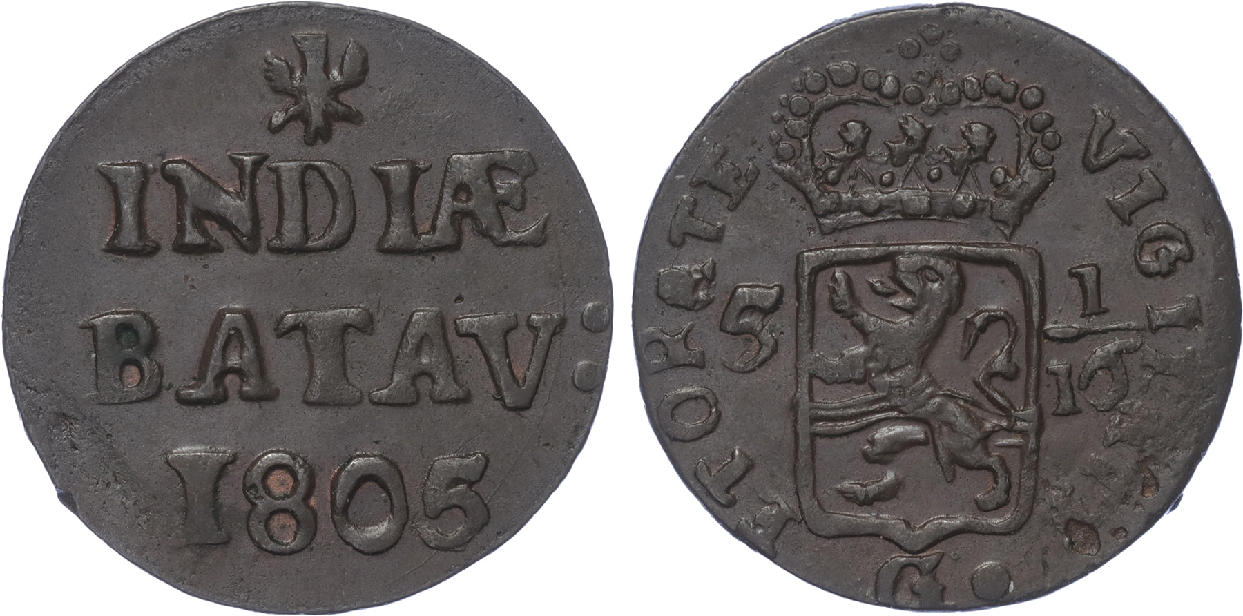 Nederlands Indië. Duit Overijssel 1805. Scho. 516. Prachtig.