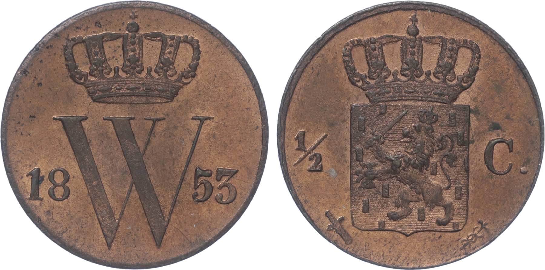 1/2 Cent 1853. FDC. Fantastisch stuk, 100% originele muntkleur.