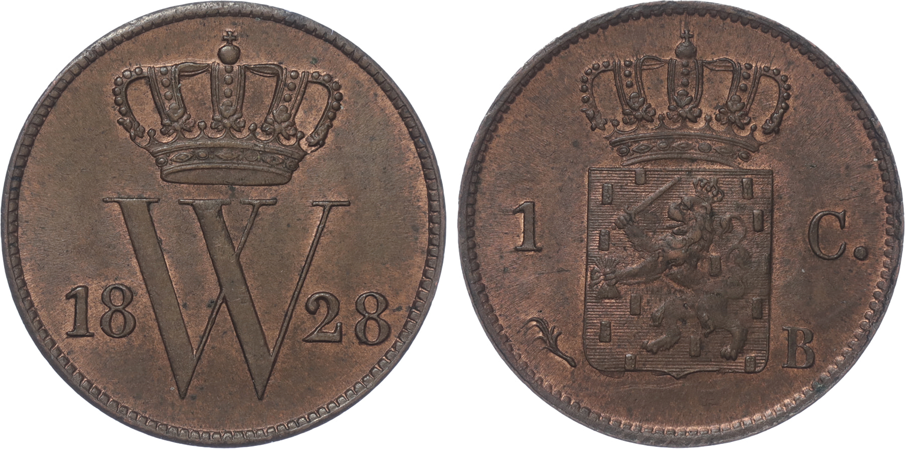1 Cent 1828 over 1827 Brussel. FDC. Fantastische kleur.