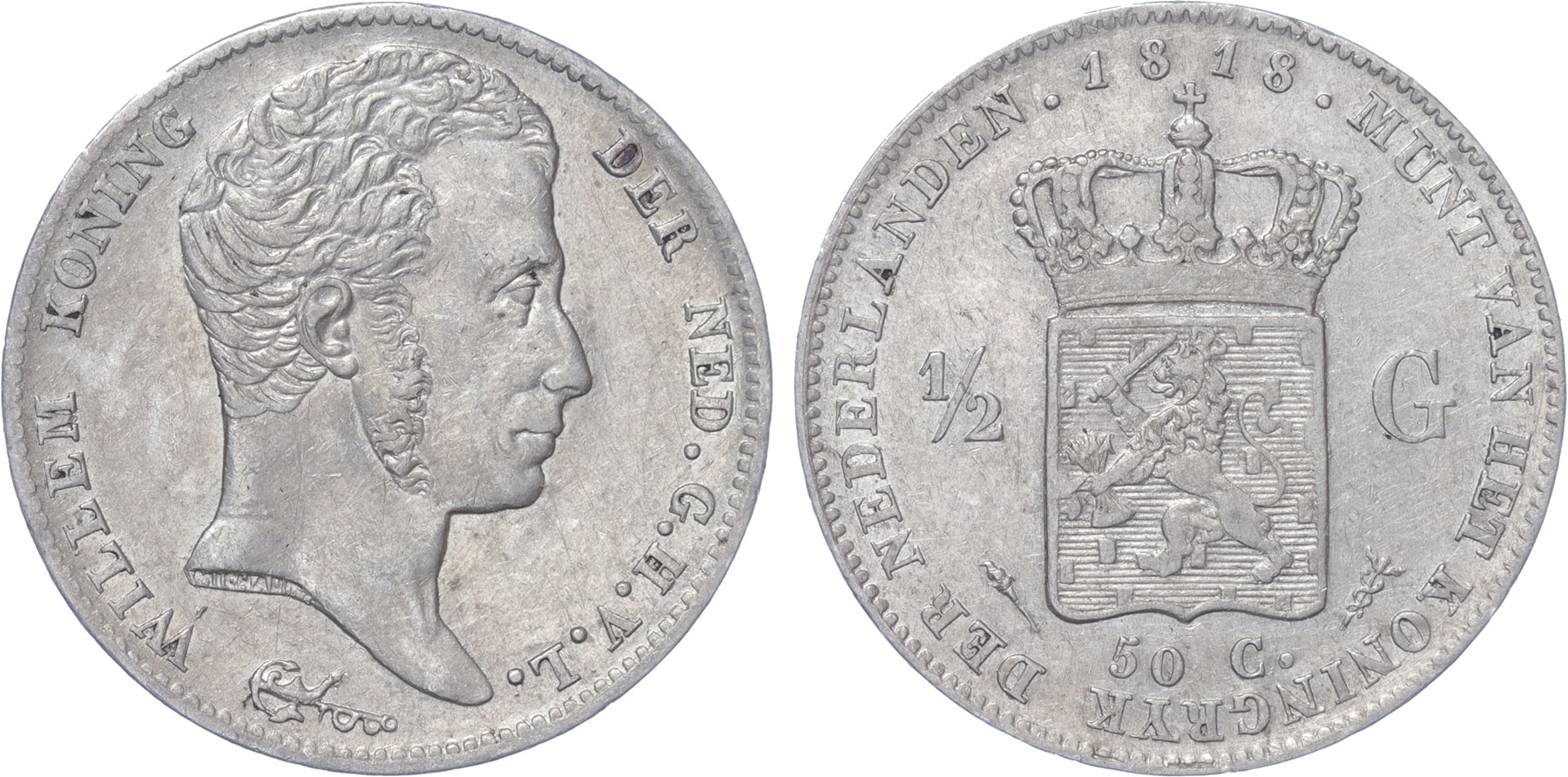 1/2 Gulden 1818 Utrecht. Zeer fraai+.