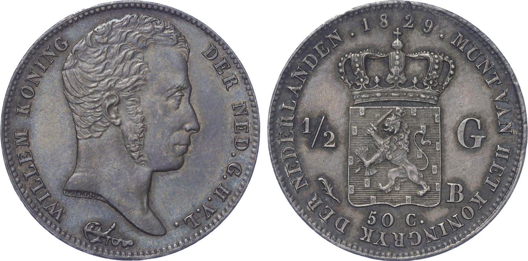 1/2 Gulden 1829 Brussel over 1823 Brussel. Prachtig.