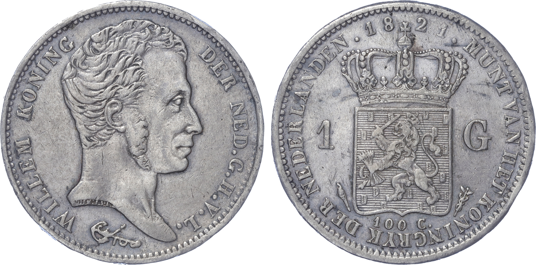 1 Gulden 1821 Utrecht. Zeer fraai+.