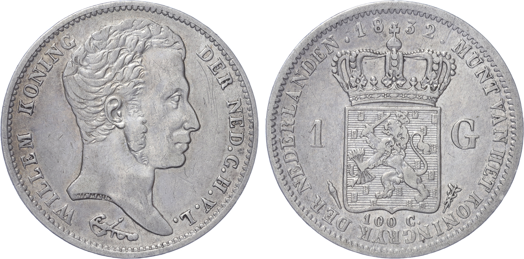 1 Gulden 1832 Utrecht. Zeer fraai.