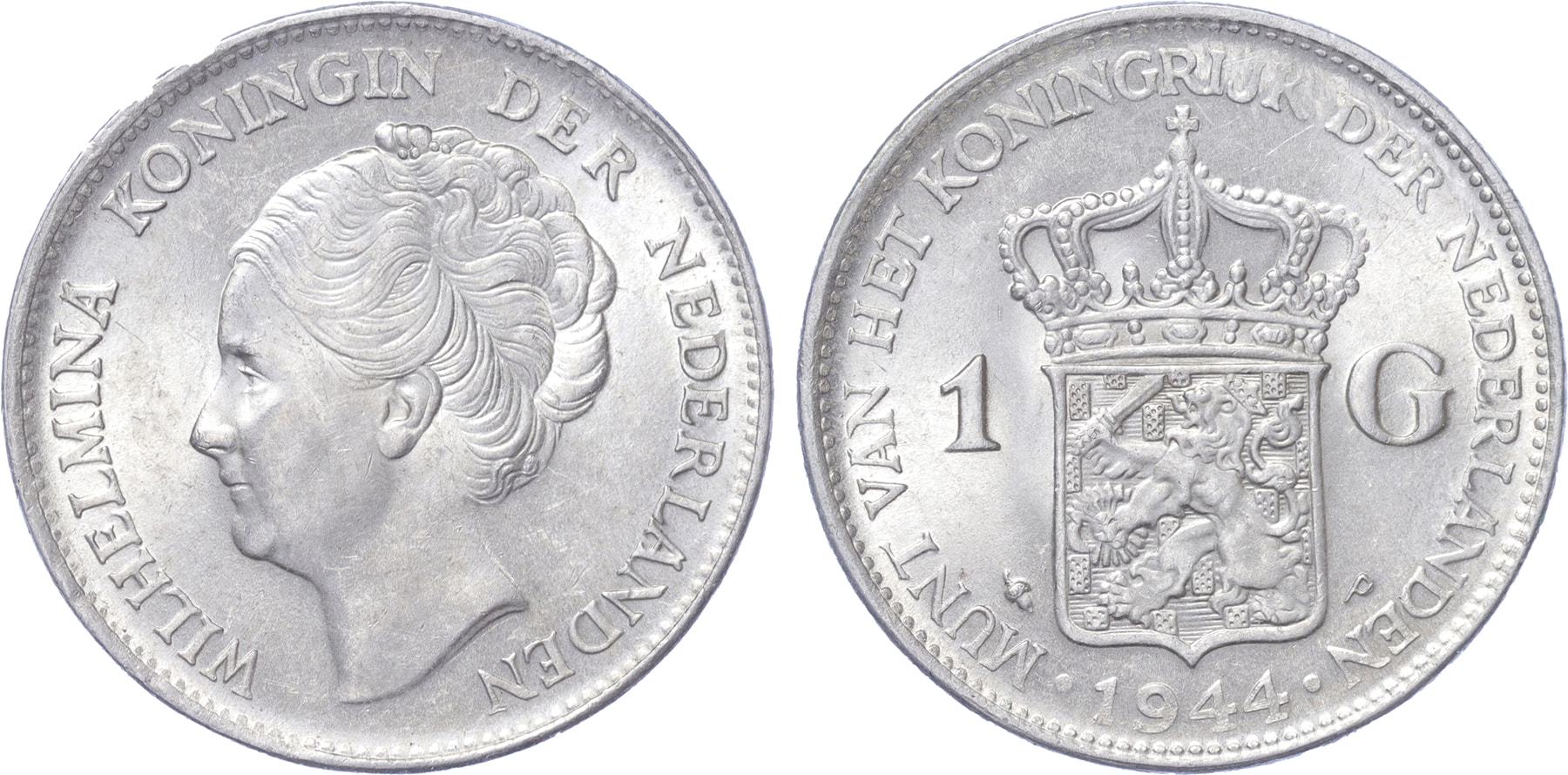 1 Gulden 1944Pe b. Met doorlopende letters. UNC.