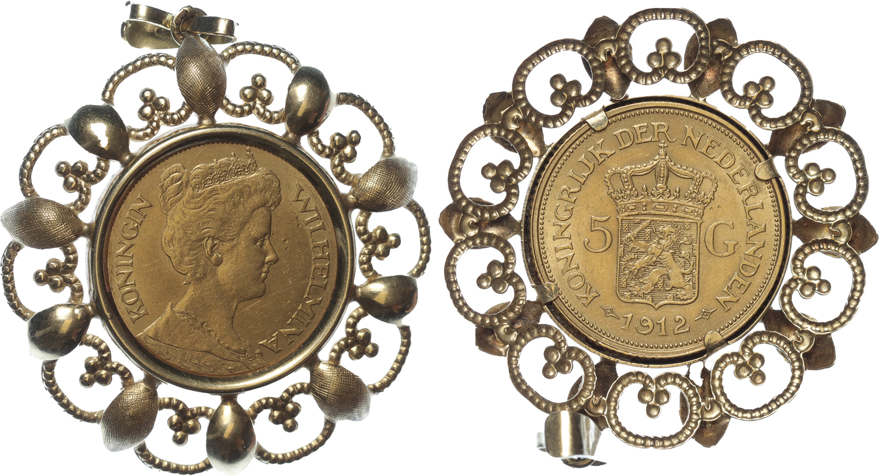 5 Gulden goud 1912 verwerkt als sieraad (5,91 g).