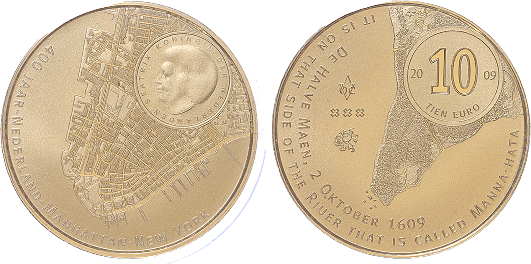 10 Euro goud 2009. Manhattan. Proof in capsule.