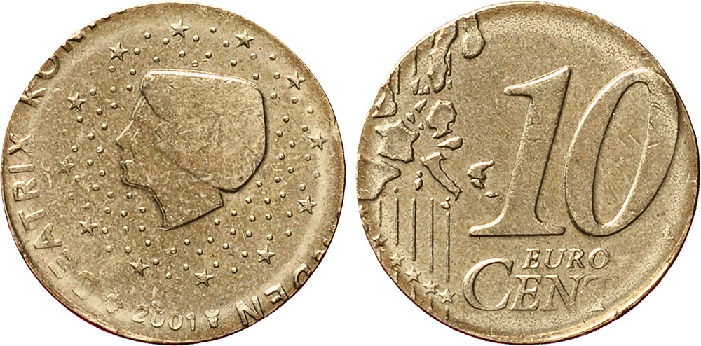 10 cent 2001. Geslagen op plaatje van 1 cent. 2,06 gr.