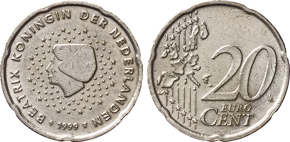 20 Cent 1999. Geslagen in ander metaal, nikkel. 5,65 gr.