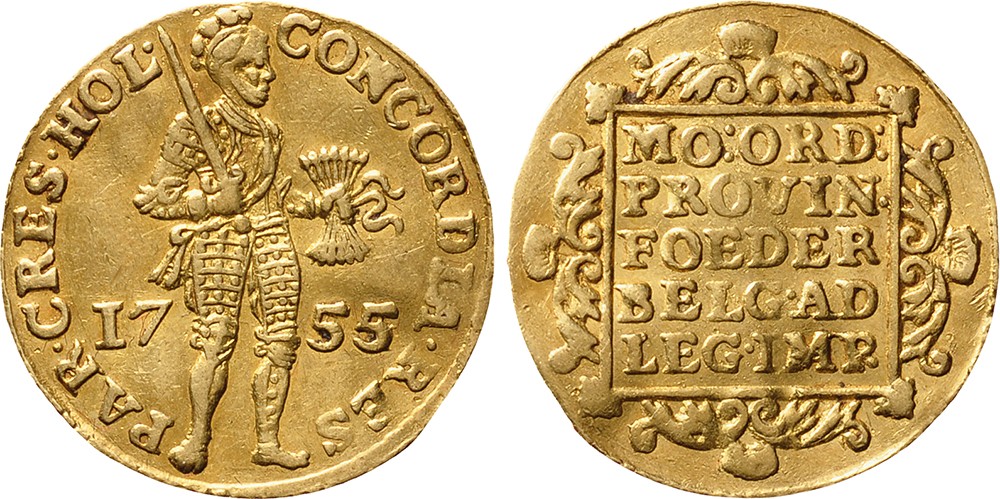 Gouden dukaat 1755/54. Cnm 2.28.54; D.775. Zeer fraai+.