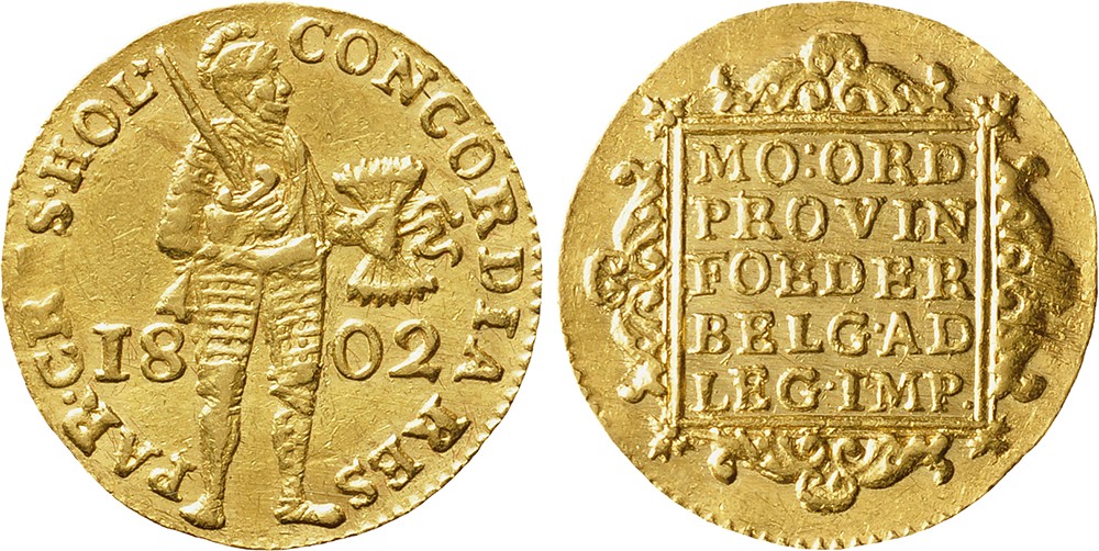 Gouden dukaat 1802 ster. Sch.26a. Prachtig.