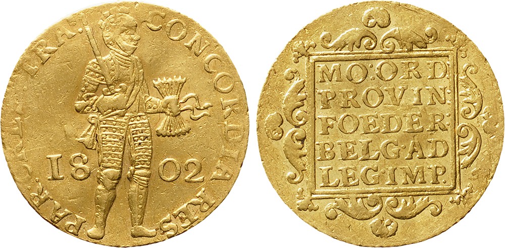 Gouden dukaat 1802. Sch.38. Zeer fraai+.