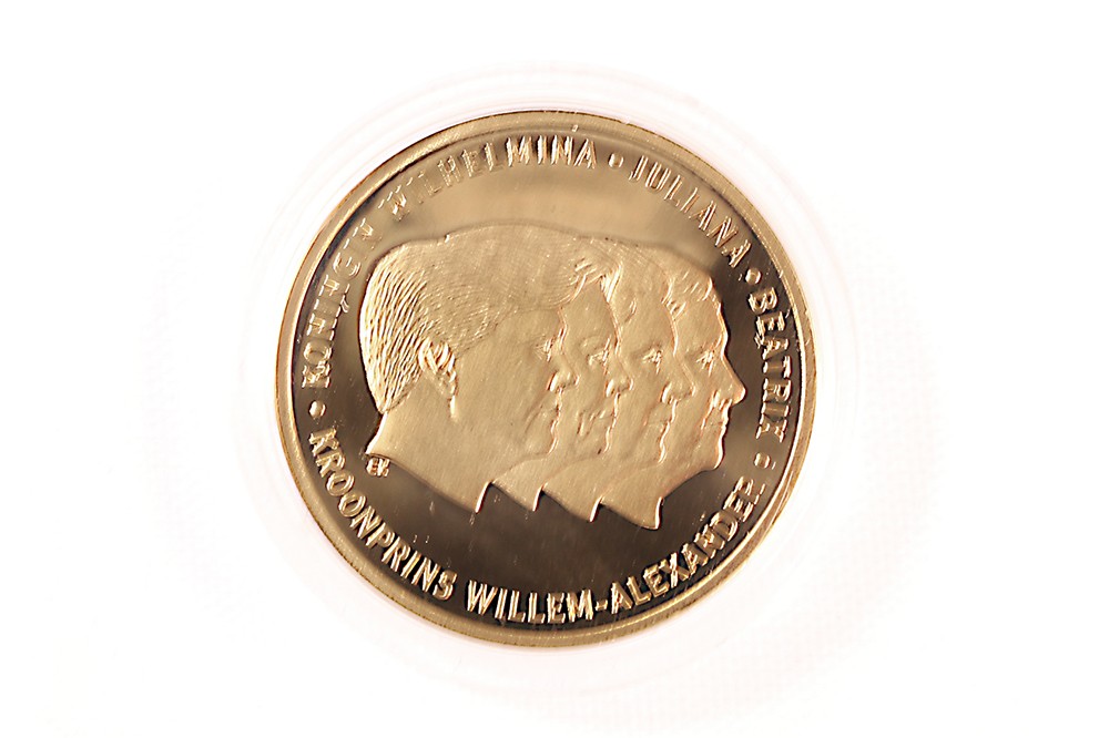 Gouden penning Willem-Alexander en zijn drie voorgangsters. 4,75 gr. 585/1000. Proof.