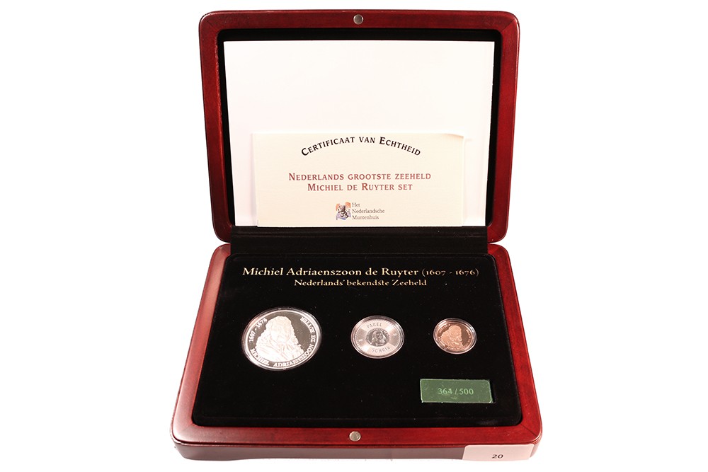 Penningset. Michiel de Ruyter. Zilver/goud.